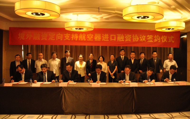 2014年8月28日,第二批境外融資定向支持航空器進(jìn)口融資簽約儀式在天津瑞吉金融街酒店舉行,中國(guó)進(jìn)出口銀行總行與天津渤海租賃、國(guó)銀租賃、工銀租賃等6家租賃公司在天津市金融局、中國(guó)進(jìn)出口銀行天津分行相關(guān)領(lǐng)導(dǎo)的見(jiàn)證下簽署了融資協(xié)議。